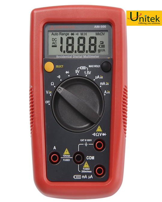 Đồng hồ vạn năng Amprobe AM-500 DIY-PRO là một đồng hồ kỹ thuật số linh hoạt và dễ sử dụng, đây là một sự lựa chọn tuyệt vời cho chủ nhà hoặc nhân viên bảo trì văn phòng. Được ứng dụng để kiểm tra điện áp trong các hộp đựng, dây mở rộng, thiết bị chiếu sáng, pin và các mạch điện khác. Amproe AM-500 DIY-PRO cũng được sử dụng để kiểm tra cầu chì, bóng đèn, và thông mạch của các kết nối điện. Bạn thậm chí có thể sử dụng AM-500 DIY-PRO để xác minh mức điện áp của pin ô tô và khắc phục sự cố điện trong xe ô tô. Với các tính năng đồng hồ vạn năng kỹ thuật số thân thiện với người sử dụng như tự động hoá và đánh giá an toàn CAT III, AM-500 giúp tiết kiệm thời gian và tăng độ tự tin đo.