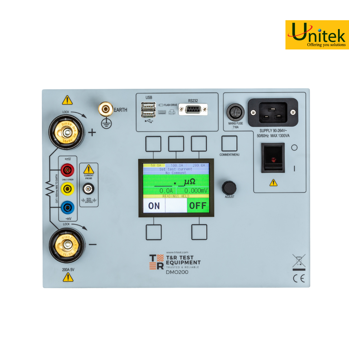 Đầu ra chính cho phép dòng điện thử nghiệm lên đến 200A.