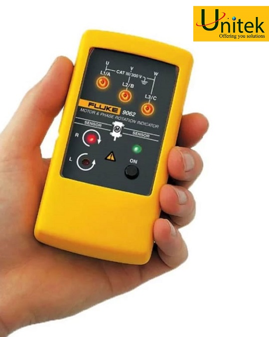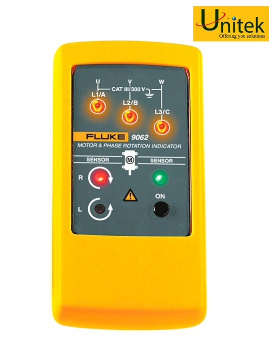 Fluke 9062 độc đáo cung cấp chỉ báo điện trường xoay và chiều quay động cơ với các lợi ích của chức năng đo không tiếp xúc. Được thiết kế cho các môi trường công nghiệp và thương mại, Fluke 9062 cung cấp chỉ báo nhanh của vòng quay 3 pha bằng cách sử dụng que đo đi kèm hoặc có thể được dùng để xác định chiều quay động cơ trên các động cơ 3 pha đồng bộ và không đồng bộ. Chức năng phát hiện không tiếp xúc lý tưởng để sử dụng trên các động cơ không nhìn thấy trục. Đầu dò đi kèm có các kẹp thay đổi được để tiếp xúc an toàn cũng như dùng trong ổ cắm công nghiệp.
