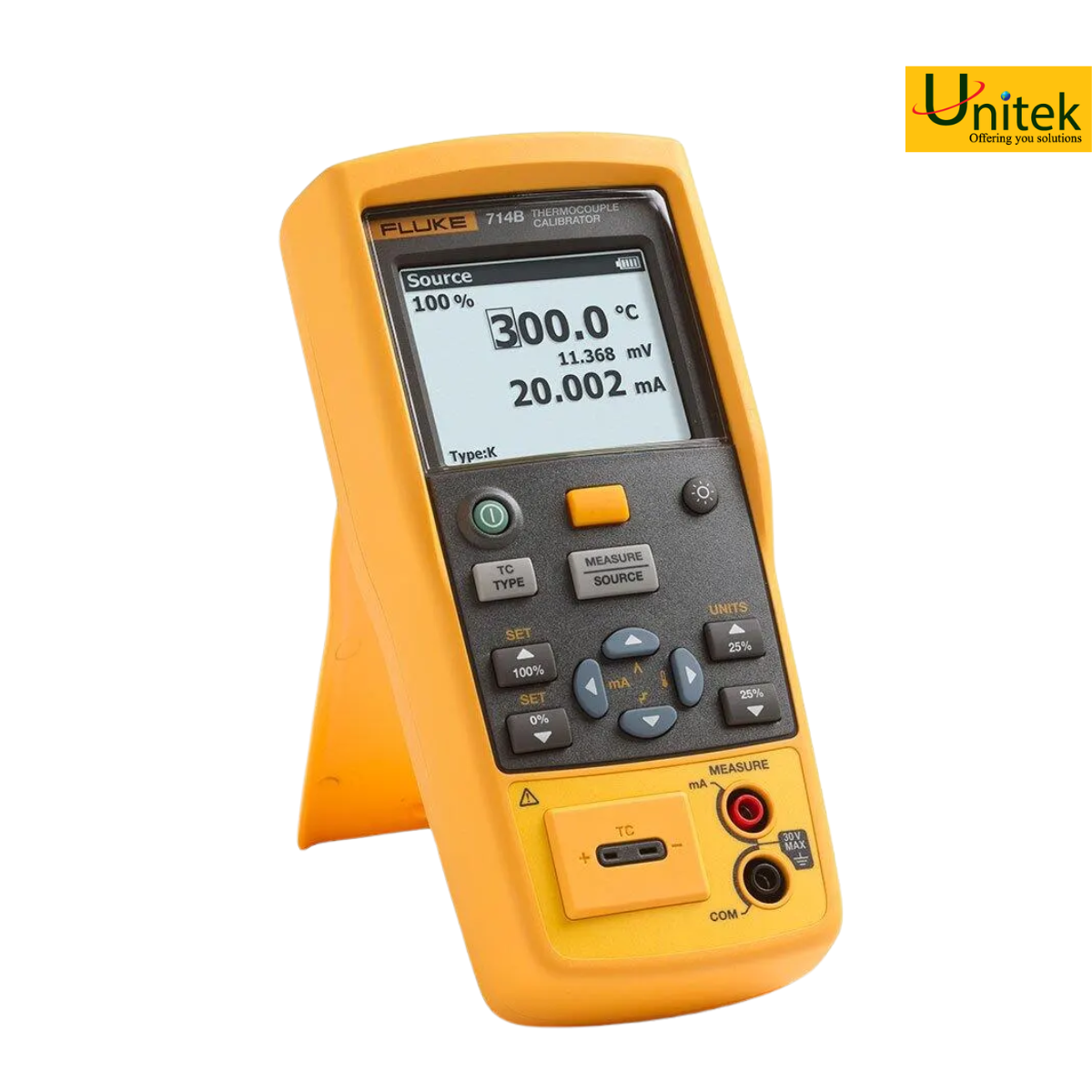 Thiết bị hiệu chuẩn nhiệt độ Fluke 714B TC là thiết bị hiệu chuẩn nhiệt độ cho cặp nhiệt điện với ưu điểm dễ sử dụng, cho số liệu chuyên nghiệp và có độ chính xác cao. Máy có thể đo lường và mô phỏng được cho 17 loại cặp nhiệt điện (TC) và khả năng thu/phát tín hiệu mV.